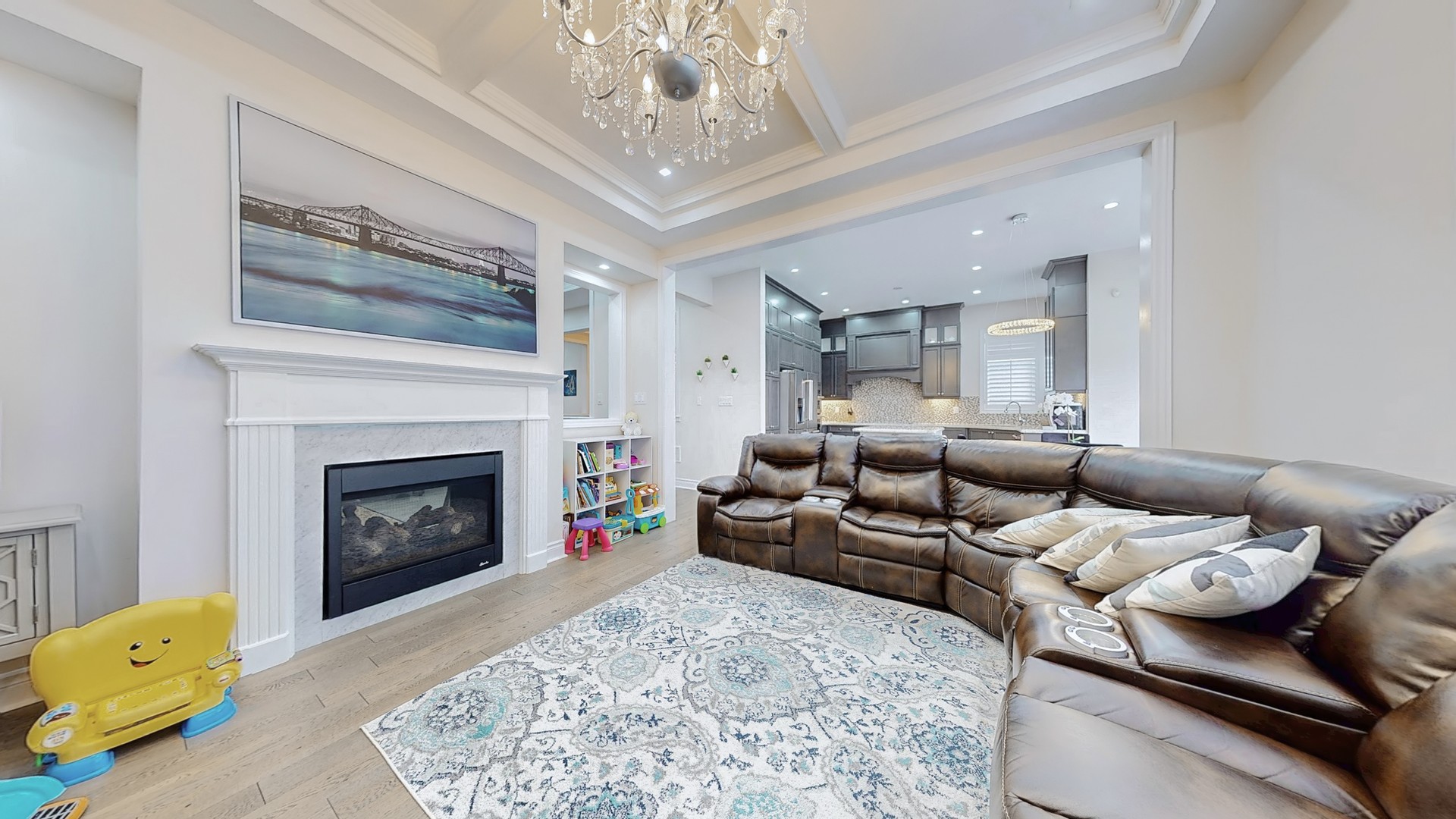 Stunning Remington Homes Kelly B Elevation (2019) offering approx. 4,500 sq. ft. of finished living space, including a legal 2-bedroom basement apartment plus a private sub-basement for the homeowner. Designed for luxury and multi-generational living, this home features premium finishes throughout. The main floor boasts 10 ft ceilings, hardwood flooring, a separate living room with double-sided fireplace, an elegant dining room with waffle ceiling, and a spacious family room with matching waffle ceiling and gas fireplace. The chef's kitchen includes tall designer cabinetry, upgraded hood cabinet with double-motor fan, KitchenAid built-in appliances (wall oven, microwave, cooktop, dishwasher, 66cm-depth fridge), glass cabinet inserts, LED under-cabinet lighting, breakfast bar, and undermount sinks. Main-floor laundry includes a 2025 Samsung washer and stainless steel dryer. Pot lights throughout. The second floor offers 9 ft ceilings and five generous bedrooms. The primary suite features double-door entry, a 6-pc spa-style ensuite with frameless glass shower, deep soaker tub, his & hers sinks, and walk-in closet. A second bedroom includes its own ensuite and balcony. Two additional bedrooms each have 4-pc ensuites, and the fifth bedroom features double doors and a large window. Four full bathrooms on the second level. The legal basement apartment includes two bedrooms, a full kitchen, separate laundry, and private entrance. A second legal side entry adds flexibility. The homeowner also enjoys a private sub-basement den, ideal for an office, gym, or storage. Additional features include 8 ft basement ceilings, hand-scraped hardwood, upgraded tiles, 2-panel doors, oak staircase with iron pickets, quality vanities, California shutters, garage door openers, upgraded central vacuum, security system, cameras with DVR, AC, furnace, hot water tank, and water softener - all owned. A showcase of elevated living and exceptional design - an absolute must-see.