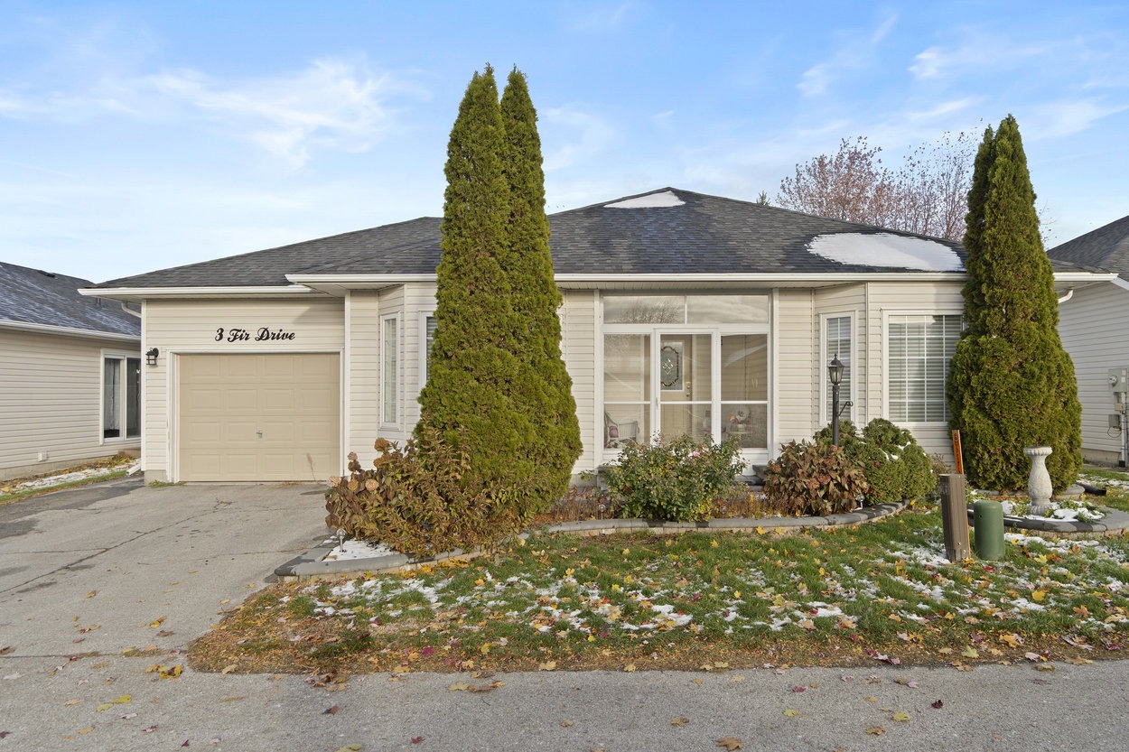 Welcome to 3 Fir Drive in the sought-after adult lifestyle community of Wilmot Creek! This charming bungalow features 2 spacious bedrooms, a combined living and dining room with hardwood floors, and a bright kitchen open to the family room with walk-out to a private rear deck - ideal for entertaining or relaxing outdoors. A screened porch at the front adds extra charm and a cozy spot to enjoy the neighbourhood. The oversized garage provides ample storage and can accommodate a golf cart. Monthly POTL fees of $1,200 include property taxes, water, driveway & road snow removal, land lease and access to all amenities. Residents of Wilmot Creek enjoy an unparalleled lifestyle with over 100 different social clubs, a vibrant hub at The Wheelhouse offering billiards, shuffleboard, fitness classes, crafts and dance programs. The community also boasts an 800-seat auditorium hosting theatre productions, dances and the Annual Grandkids Christmas Party. Amenities include a private 9-hole golf course, swimming pool, clubhouse, fitness centre, tennis courts, library, woodworking shop, and more - all just steps from Lake Ontario. Truly a welcoming, active community with something for everyone!